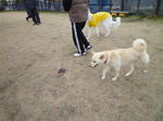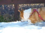 この日も先日降った雪の上で「クンクン」とお友達の匂いを探検していました