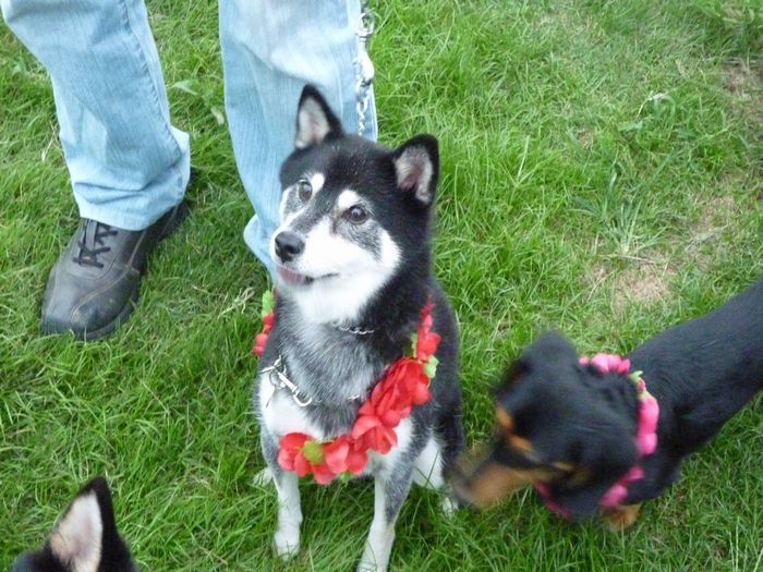 わんちゃん達もレイをかけてもらいすっかりハワイ気分です