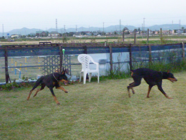 ドーベルマンの姉妹マナちゃんとリンちゃんです