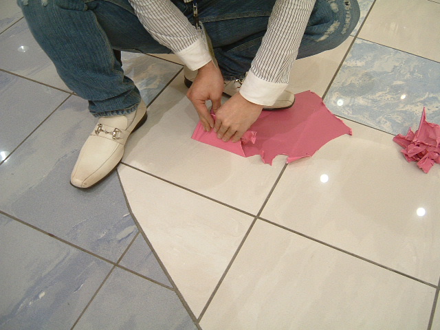 何かを剥がしている