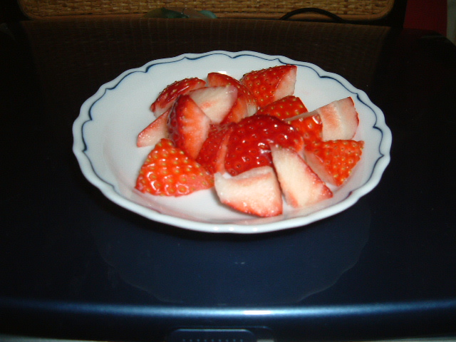 ふ~ちゃんとアニモの夕食はいちごのデザート付きです