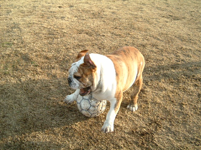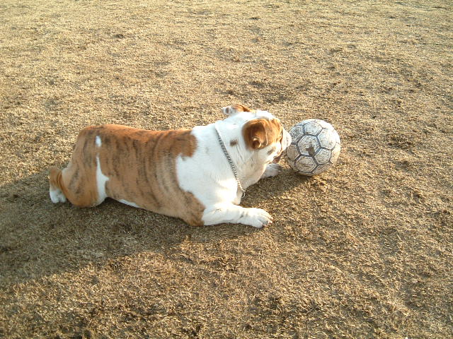 サッカー好きのわんちゃんボノ君に挑戦しませんか?