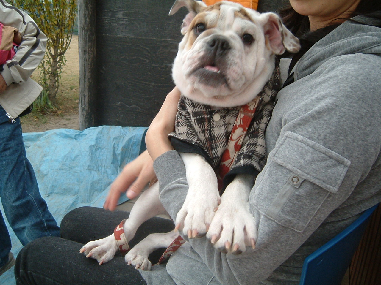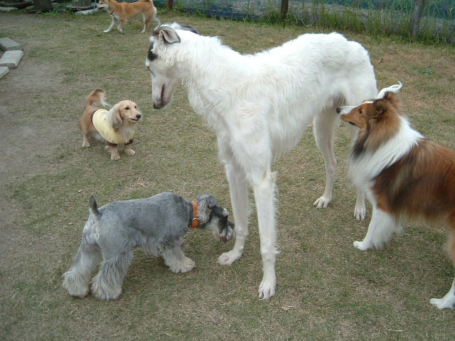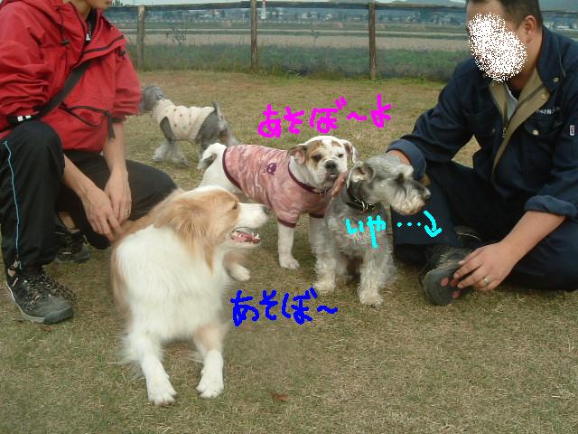飼い主さんは各々防寒着でガッチリ身を包みランに遊びにきています