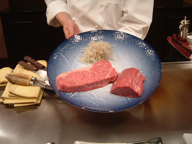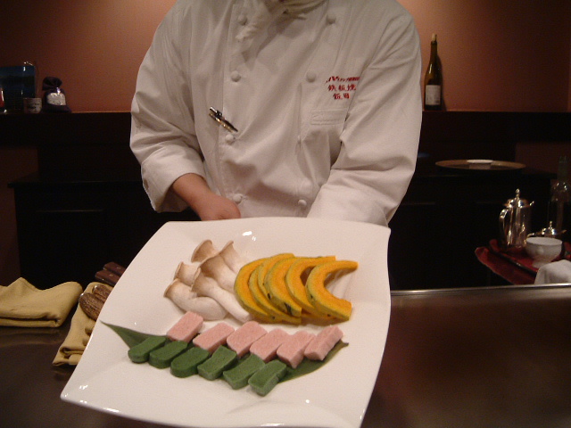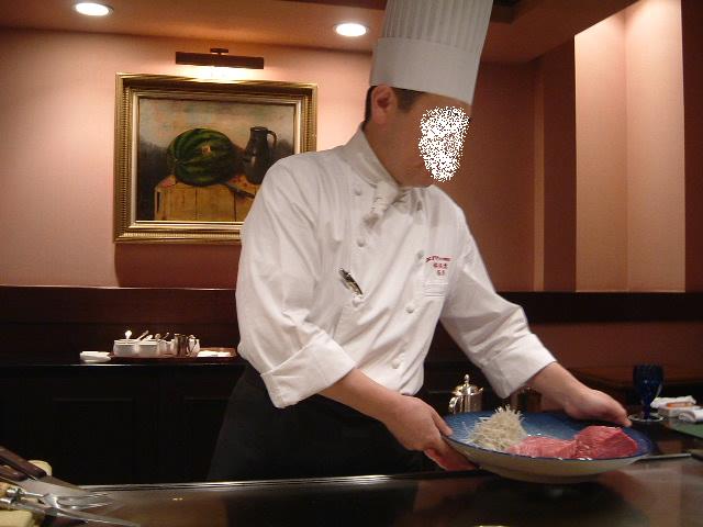 鉄板焼きの夕食を予約していてくれました