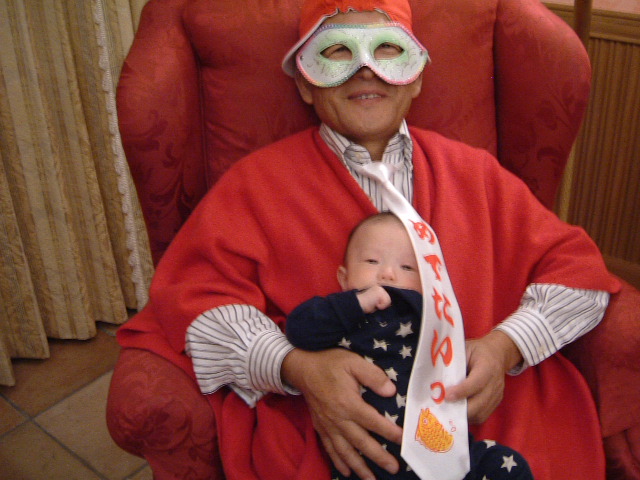 変な格好にされるがままのアニモパパ