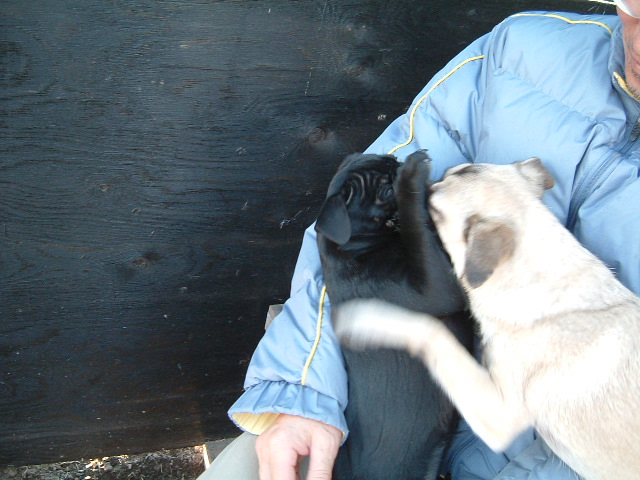 ちょうどパグのブッキー君がいたので仲良く遊んで飼い主さんを待っていました