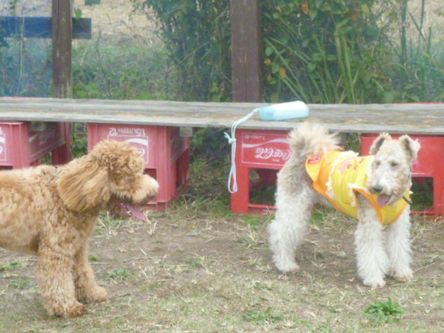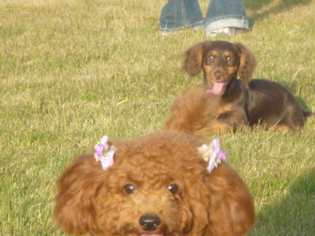 お友達どうしです Kダックスのマロン君 プードルのクッキー君