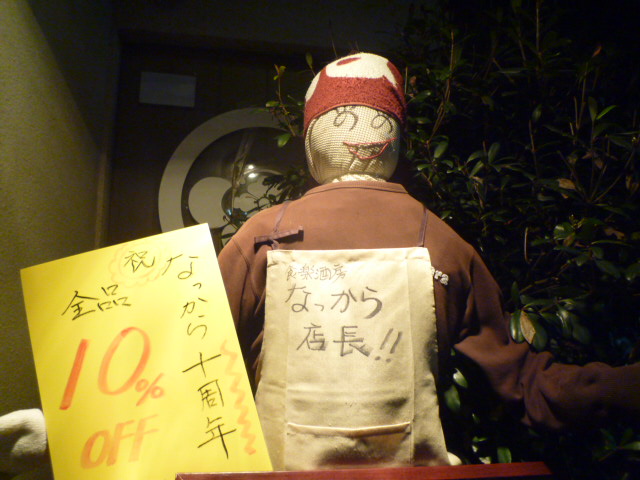店長手作りの看板 店長手作りの案山子