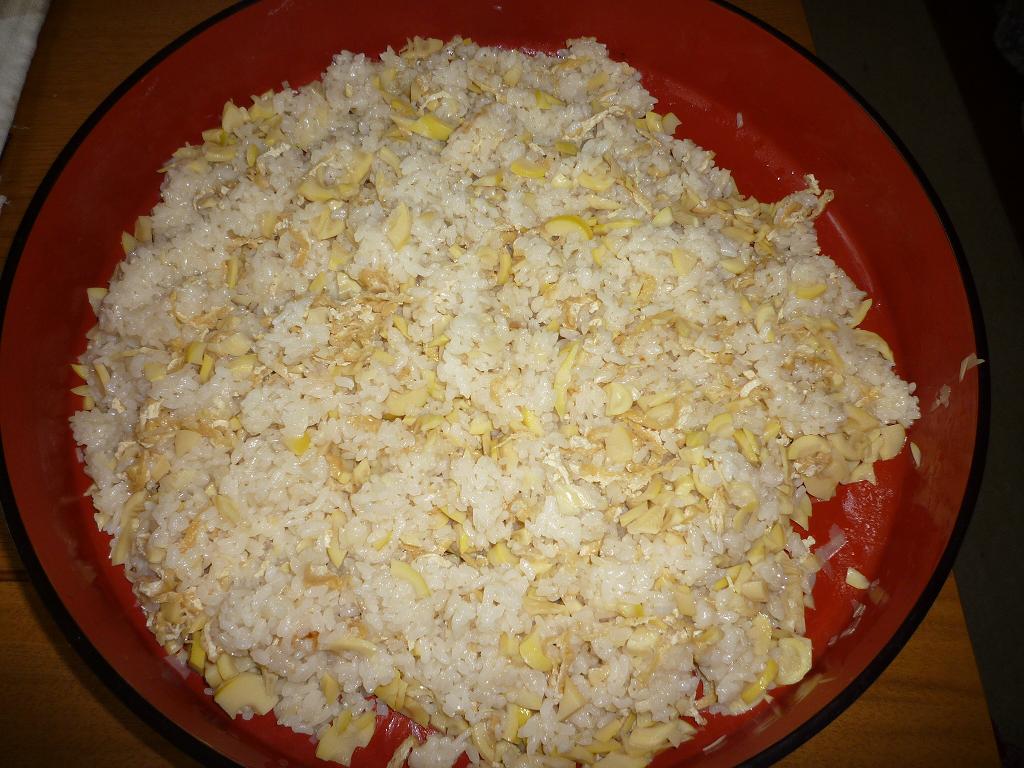 そこへ、美しいかぐや姫が竹の子ご飯を作って持ってきてくれました